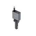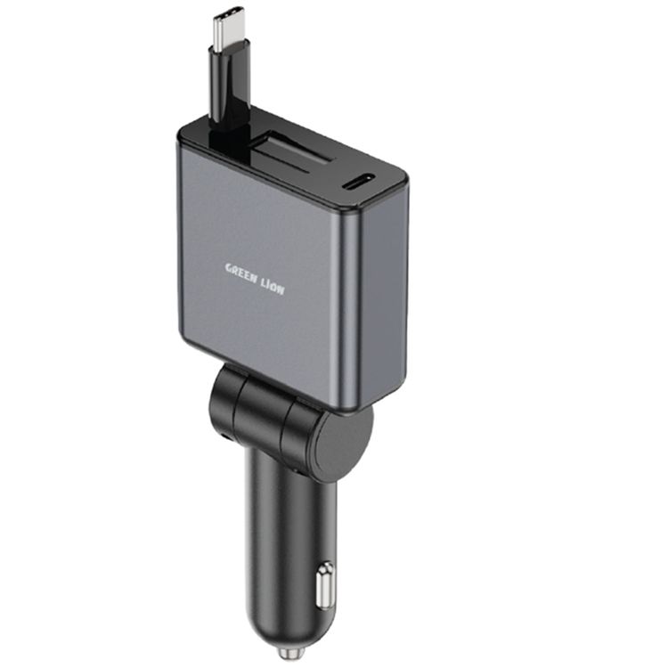 Green Lion Retractable 75W Car Charger with 50% Charging in 30 Minutes, Retractable 80cm Cable for Tangle-Free Use, Built-in Safety Fuse for Protection, On-the-Go Convenience, Simultaneous Charging, PC + Aluminum Alloy Material - Gray