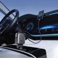 Green Lion Retractable 99W Car Charger with Soft Ambient LED, 2× USB-C Ports, 1× USB-A Port, Flexible & Adjustable, Safety Protection, 80cm USB-C & Lightning Cable, 180° Swivel & Flexible, PD 45W, ABS + Flame Retardant PC Material - Gray
