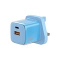 Green Lion Reva Dual Port Wall Charger with Fast Charge Support, 20W Power Delivery, 18W USB-A Output, Flame-Retardant Material, Multi-Device Charging, Built-in Safeguard - Blue