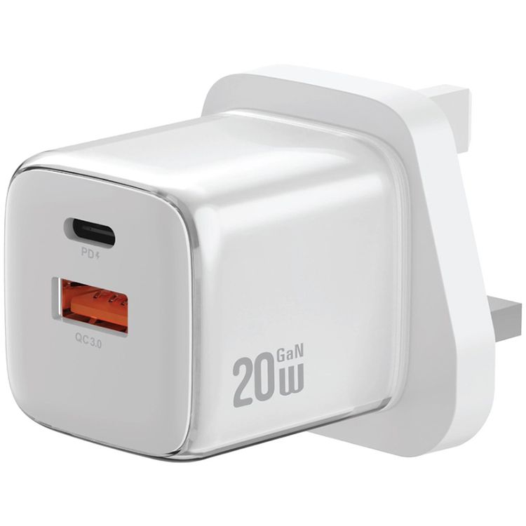 Green Lion Reva Dual Port Wall Charger with Fast Charge Support, 20W Power Delivery, 18W USB-A Output, Flame-Retardant Material, Multi-Device Charging, Built-in Safeguard - White