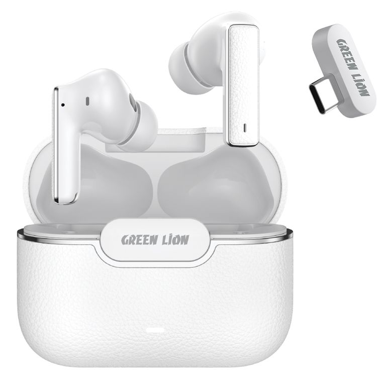 Green Lion River Plus True Wireless Earbuds with ANC + ENC Clarity, 2.4G Connector Included, Up to 7 Hours of Playtime, Smart in-Ear Detection, Bluetooth Version 5.4, -42dB Noise Reduction, 35 Hours Standby Time - White