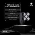 Green Lion Rotary Shaver, Wet & Dry Use, 5-in-1 Grooming Kit, Powerful DC 260 Motor, 2 Speed Levels, Sharp Pivoting Blades, 2 Hours Cordless Use, Waterproof, SkinSafe Technology, 360° Floating Heads Trimmer - Black