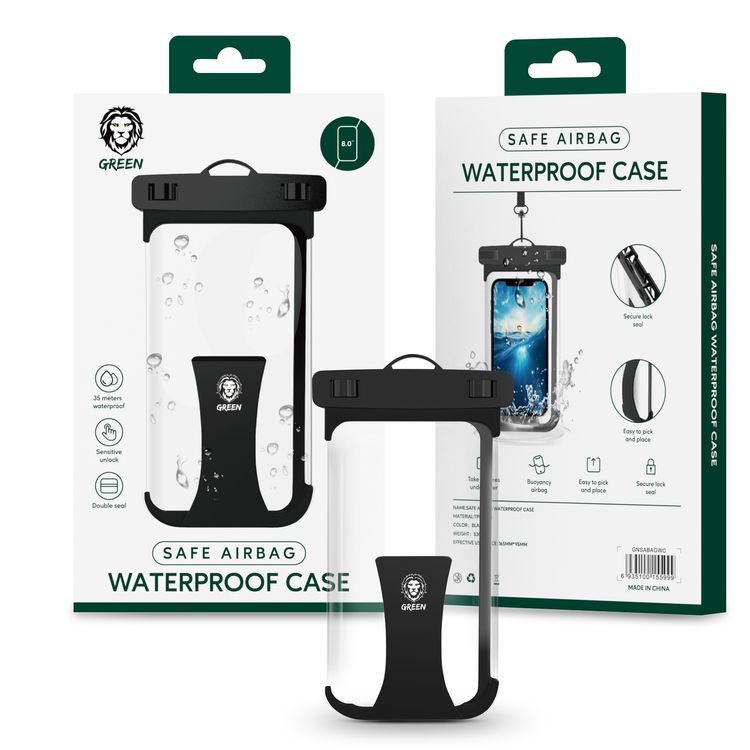 Green Lion Safe Airbag Waterproof Phone Case 8 Inch - Black