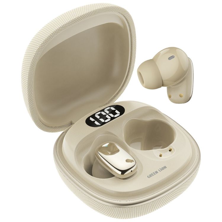 Green Lion SIENA True Wireless Earbuds, IPX5 Water Resistance, LED Digital Display, Bluetooth Version 5.4 - Beige
