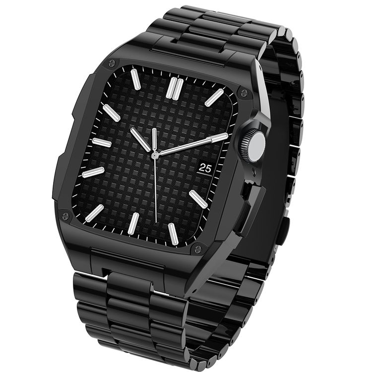 Green Lion Significato Steel Watch Strap Case for Apple Watch 49mm, Soft TPU Interior, Easy Installation, ECG-Compatible - Black