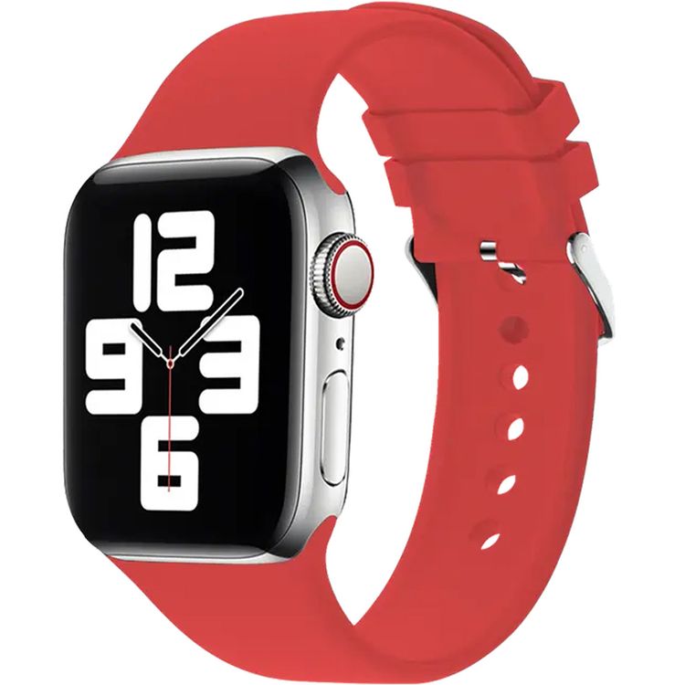 Green Lion Silicone Watch Strap with Buckle Lock for Apple Watch 44/45mm, Comfortable Wearing, Premium Material, Adjustable Strap - Bright Red