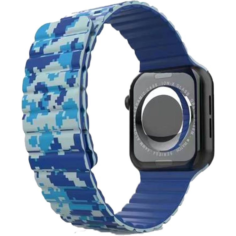 Green Lion Silicone Watch Band for Apple Watch 42/44/45mm with Magnetic Band, Comfort Wearing, Dual-Color Design Options, Perfect for Any Occasion, Supports Wireless Charging, Bubble-free and Easy Installation, Lightweight Design - Navy Camouflage