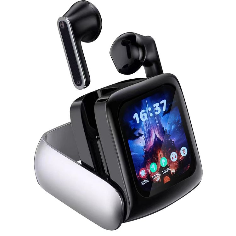 Green Lion Smart Display Earbuds with Multi-Function Touch Screen, Up to 5 Hours Play Time, 13mm Brass Speaker Driver, 500 mAh Charging Case Battery, Environmental Noise Cancellation Technology - Black
