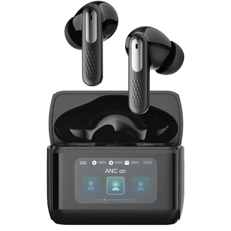 Green Lion Smart Tune True Wireless Earbuds with ANC, Smart Display Case, 500mAh Case Battery Capacity, 10m Transmission Range, IPX5 Waterproof - Black
