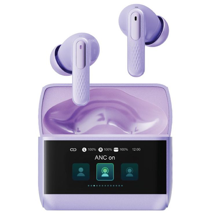 Green Lion Smart Tune True Wireless Earbuds with ANC, Smart Display Case, 500mAh Case Battery Capacity, 10m Transmission Range, IPX5 Waterproof - Purple