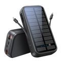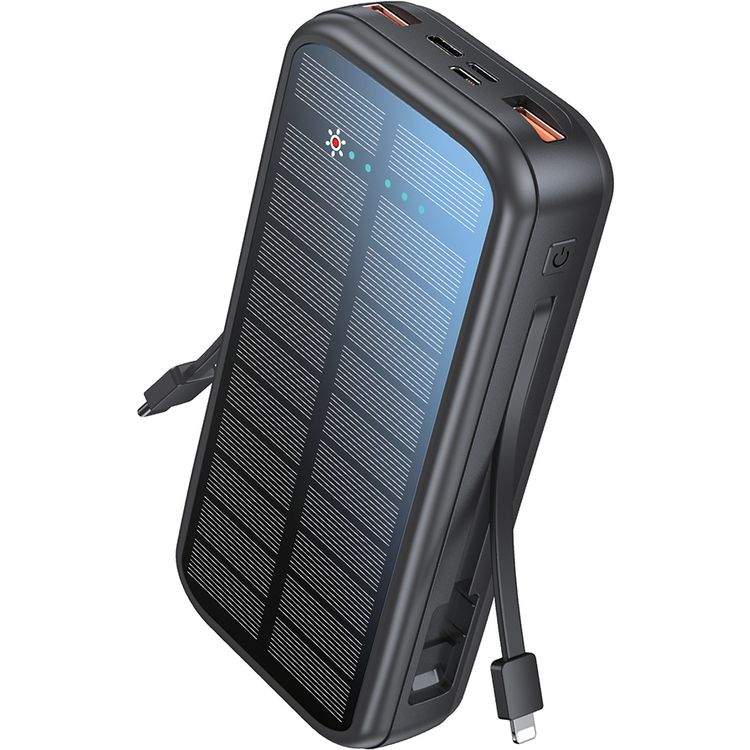 Green Lion PD2OW Solar 2 20000mAh Power Bank, Built-in Type-C & Lightning Cables, Short Circuit and Overvoltage Protection - Black