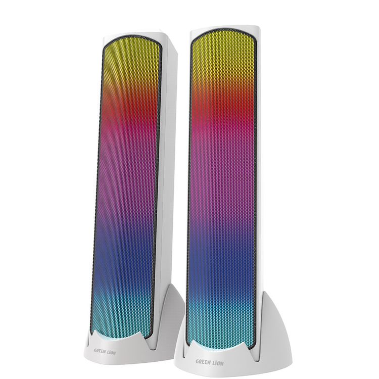 Green Lion Soundray Gaming Speakers with Plug & Play, AUX Mode, Lag-Free, Dual Play Modes, 10W Power, USB-A Interface, In-Line Control, Hi-Fi Sound, 8-Modes RGB Lights, Bluetooth Version 5.3, Gaming, 160cm Cable Length, 10m Transmission Range - White