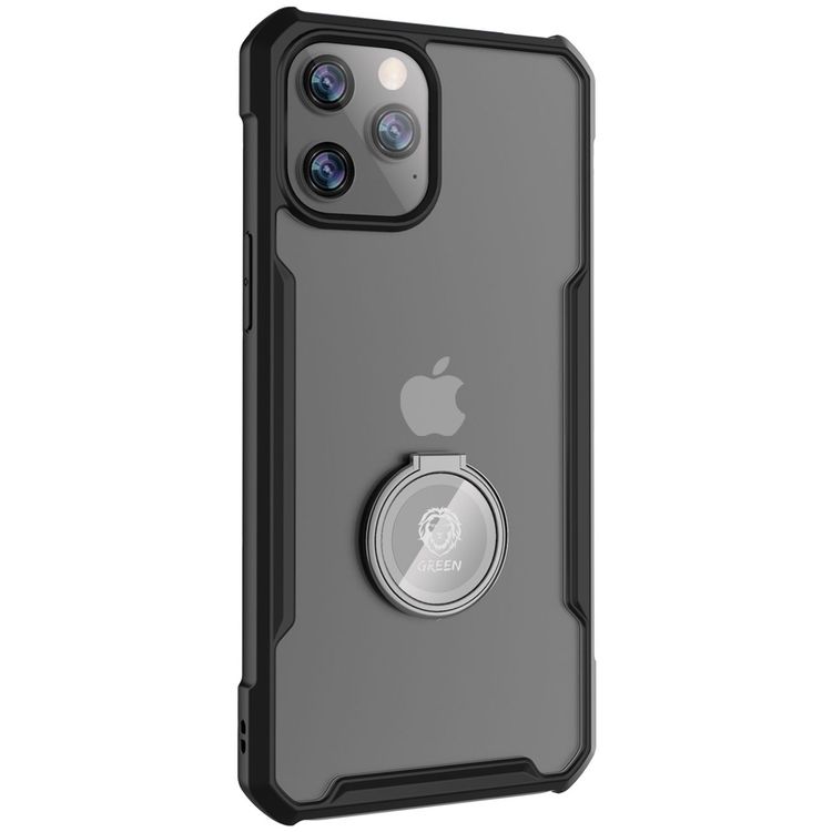 Green Lion Stylishly Tough Shockproof Case with Ring Anti-Shock Case Anti-Scratch Clear Hard PC + Metal Can work with Magnetic car phone holder (iPhone 12 Mini 5.4") - Black