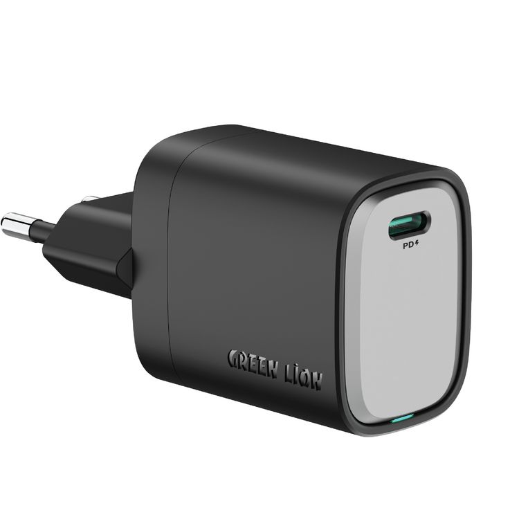 Green Lion Supra 45W GaN USB-C Wall Charger with EU 2-Pin Plug, PPS 40W, Charging Protection, Flame-Retardant PC Material, PD 45W Fast Charging - Black / Gray