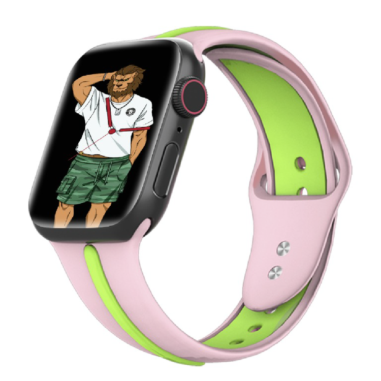 Green Lion Tanoshi Watch Strap, Fit & Comfortable Replacement Wrist Band, Adjustable Straps Compatible for Apple Watch 42/44mm - Pink / Green Lion