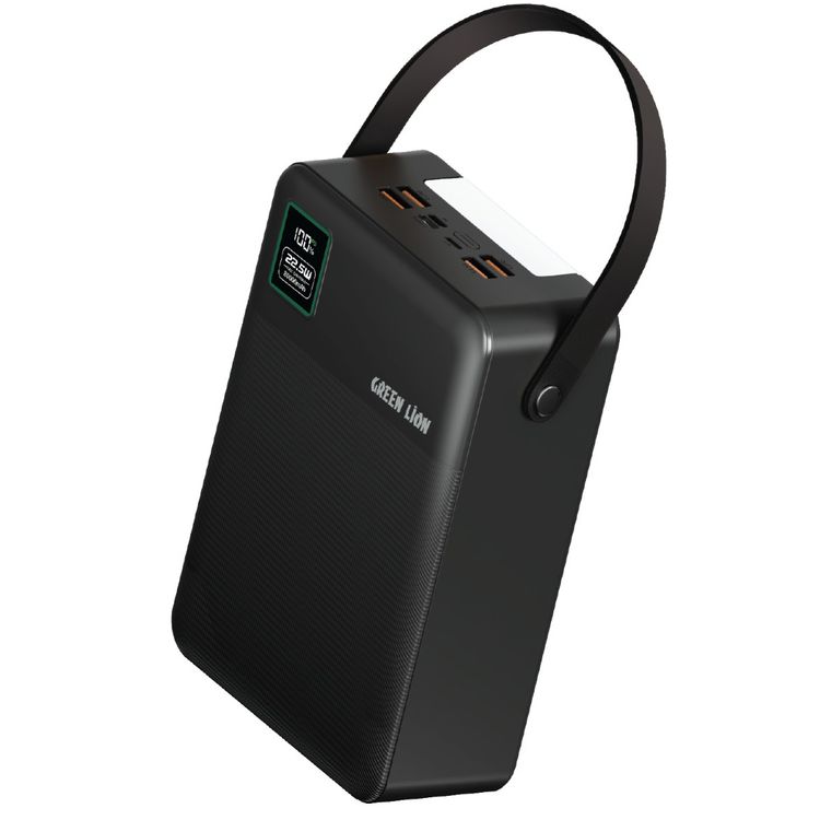 Green Lion Thunder 80 Power Bank with 80000mAh Battery Capacity, Flashlight, PD 20W, QC 22.5W, x4 USB-A & Lightning & Micro & USB-C Ports, LED Digital Display - Black