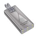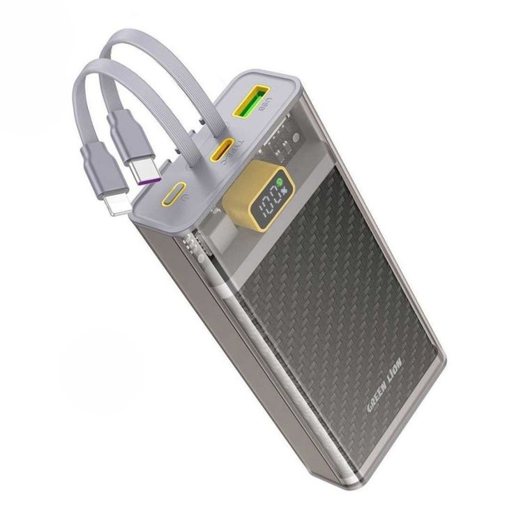 Green Lion Transparent 2 Power Bank, 20000mAh, PD 20W Fast Charge, Integrated Type C & Lightning Cables, LED Display, Lithium ion Polymer Battery, Portable - Grey