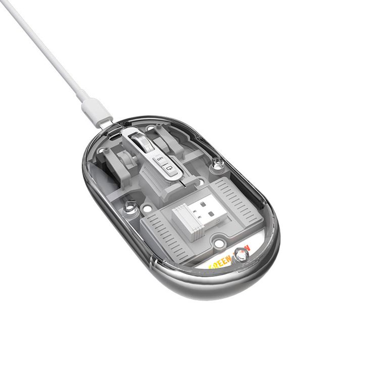 Green Lion Transparent Mouse Lite with Invisible Click Power, Up to 10 Million Clicks, 5 Keys, 500mAh Battery, Connects Up to 3 Devices, USB-C Charging Interface, Plug & Play - Gray