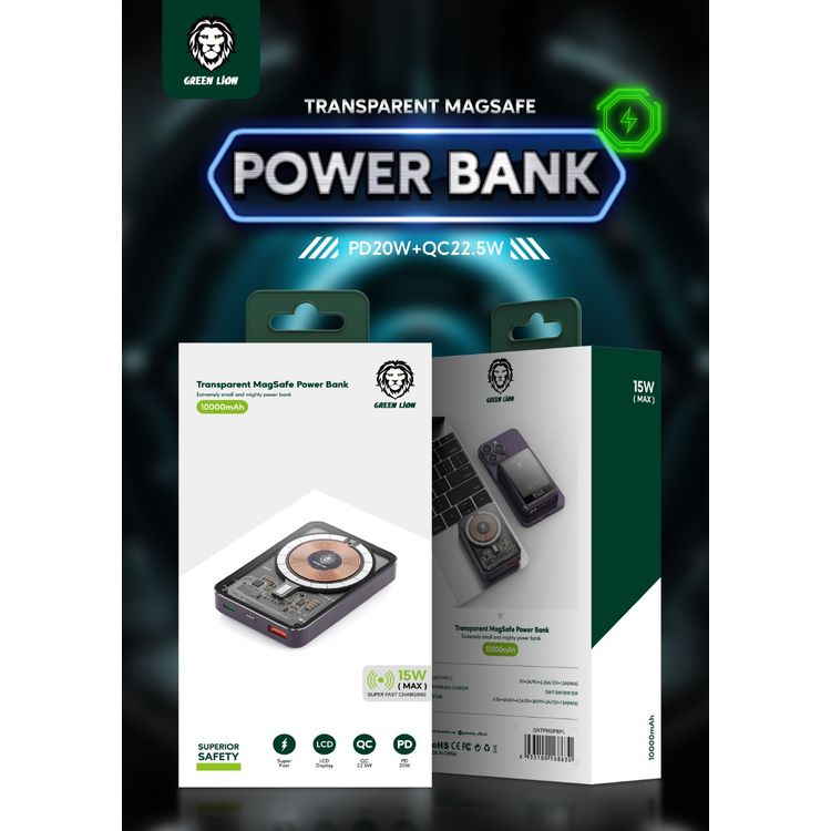 Green Lion Transparent Magsafe Power Bank 10000mAh (QC 22.5W + PD 20W) 15W