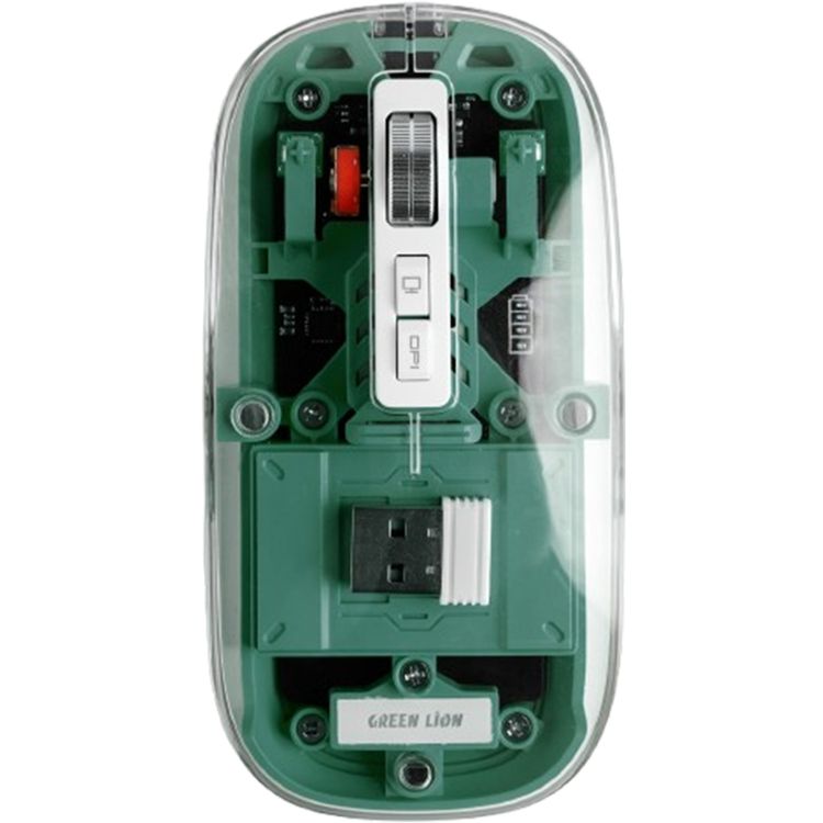 Green Lion Transparent Mouse with Adjustable Optical Resolution, Up to 3 Million Clicks, 400mAh Battery, Connects Up to 3 Devices, Plug & Play, Up to 10m Wireless Range - Green