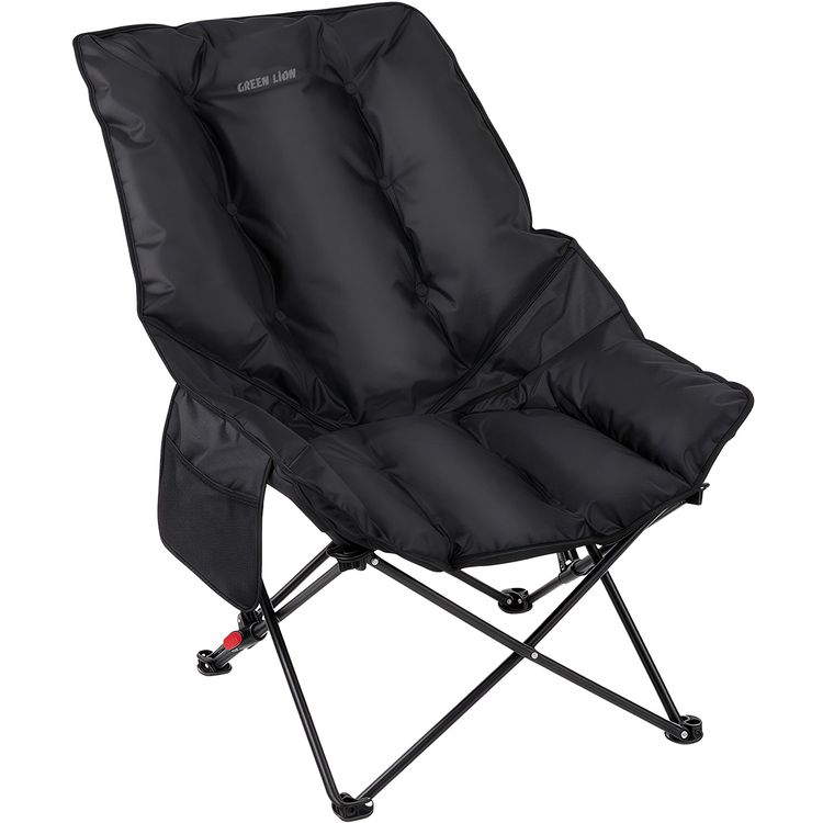 Green Lion Travix Camping Chair with Non-Slip Base, Large Side Pocket, Adjustable Backrest, High-Quality Fabric, Lightweight Design, Carry Bag Included - Black