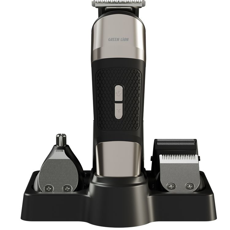 Green Lion Trim Master 5-in-1 Trimmer with Storage Base, Textured Grip, Type-C Charging, Corded & Cordless Use, Digital Display, Detachable Different Heads - Black