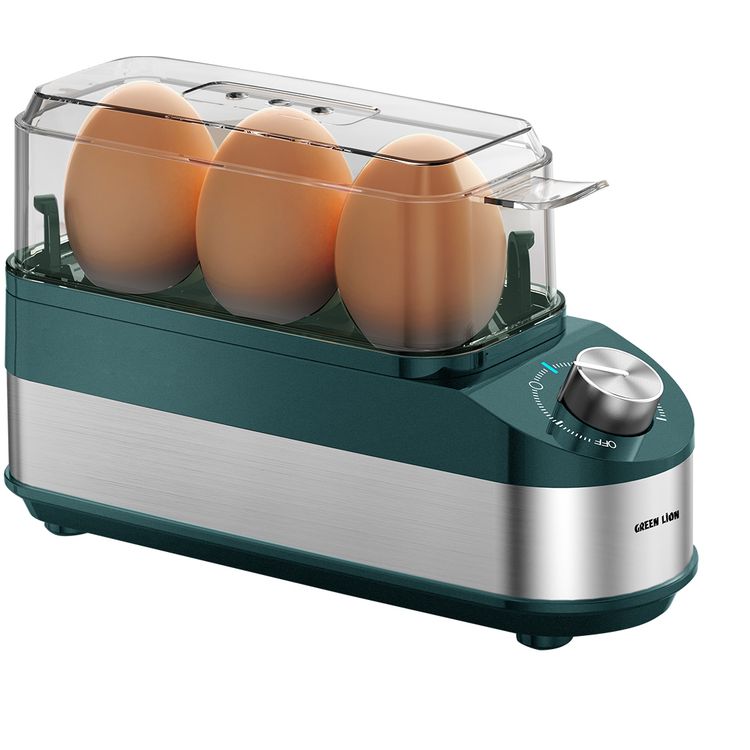 Green Lion Trio Egg Cooker with Auto Shutoff, Rotatory Knob, Non-Stick Coating, BPA-Free Plastic, 210W Rated Power - Green