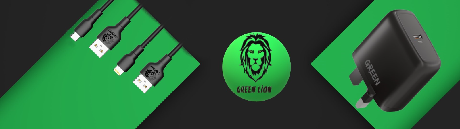 Green Lion Type-C Port Wall Charger with Type-C to Type-C Cable, 20W Power Delivery, UK 3-Pin Plug, Fast Charging and Auto-ID Support, Overheat Protection, Fireproof Material, Built-in Safeguards - Black