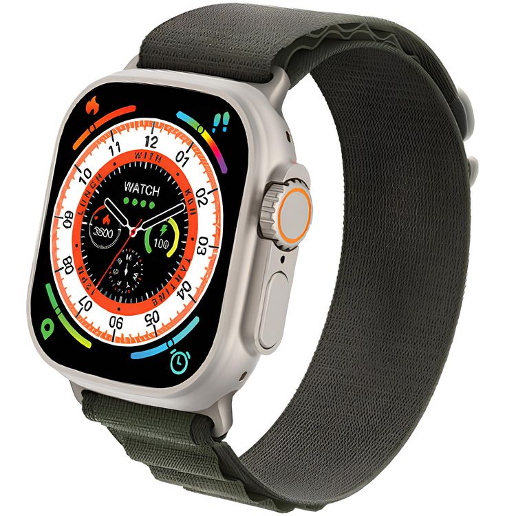 Green Lion Ultra Active 49mm Smart Watch with 2.16" IPS Screen, Bluetooth Call & Camera, 64MB Flash Memory, 350mAh Battery, Workout & Sleep Monitoring, 10 Days Standby, Alarm & Stop Watch, IP68 Waterproof - Titanium / Green
