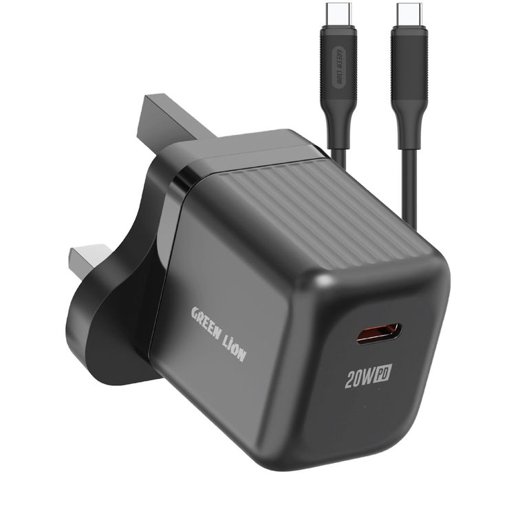 Green Lion Ultra Compact GaN Wall Charger with Single USB-C Port and USB-C to USB-C Cable, PC Flame Retardant Material, Fast Charging Support, Charging Protection, Universal Compatibility, Ultra Portable - Black