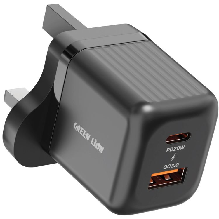 Green Lion Ultra Compact GaN Wall Charger with Dual USB-C & USB-A Ports and PC Flame Retardant Material, Fast Charging Support, Charging Protection, Universal Compatibility, Ultra Portable - Black