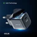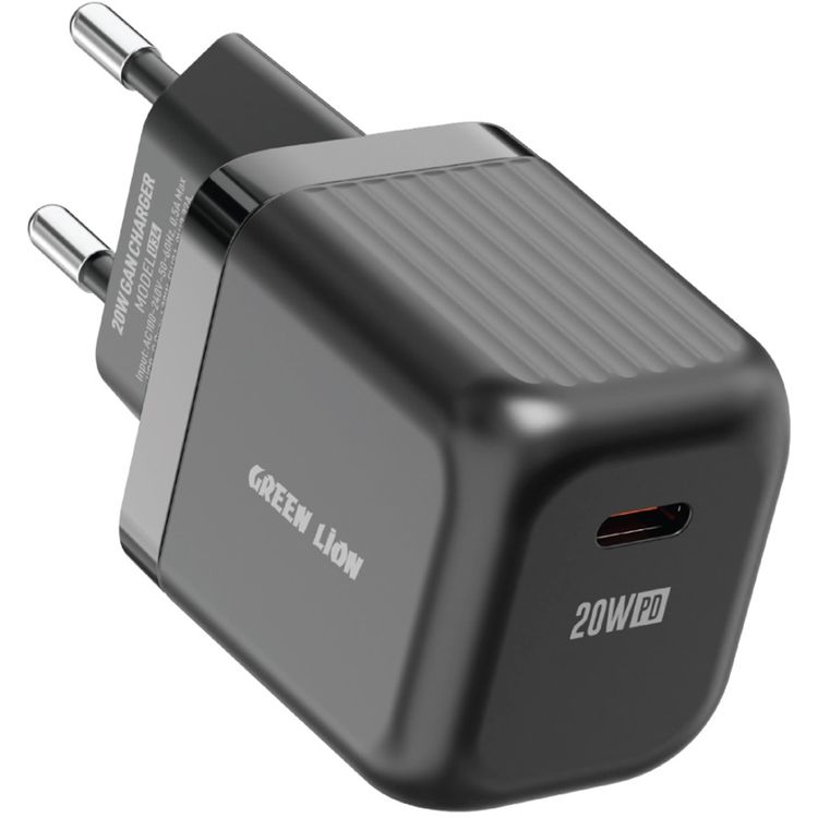 Green Lion Ultra Compact GaN Wall Charger with Single USB-C Port and PC Flame Retardant Material, Fast Charging Support, Charging Protection, Universal Compatibility, Ultra Portable - Black