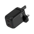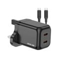 Green Lion Ultra Compact GaN Wall Charger with Type-C to Type-C Cable, PD 45W, Dual USB-C Ports, PC Flame Retardant Material, 3-Pin UK Power Plug, Charging Protection, GaNStorm Technology - Black