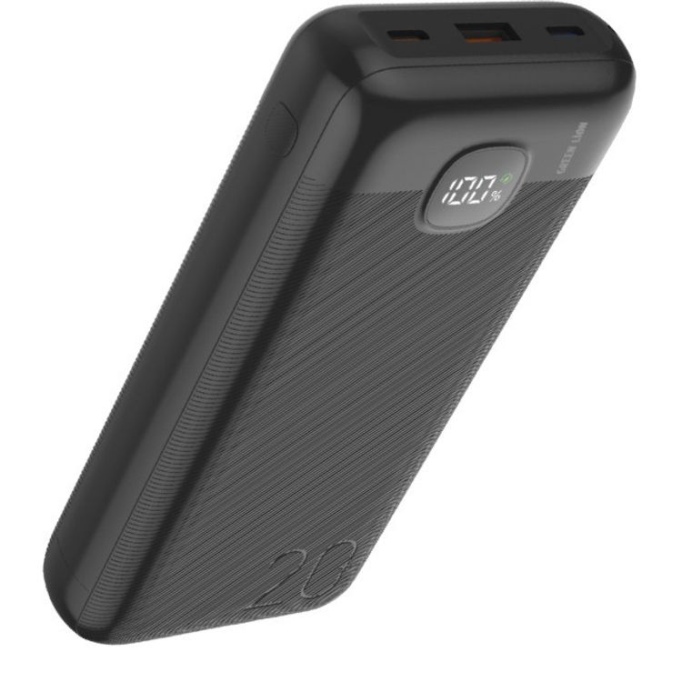 Green Lion Ultra Compact Power Bank 20000mAh with LED Display, Lightweight & Compact Design, 2 Type-C Outputs & 1 USB-A Output, Durable Outer Shell - Black
