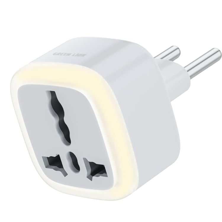 Green Lion Universal Conversion EU Plug with LED Light, Travel Friendly, Multiple Circuit Protection, Lightweight, Pocket Size - White