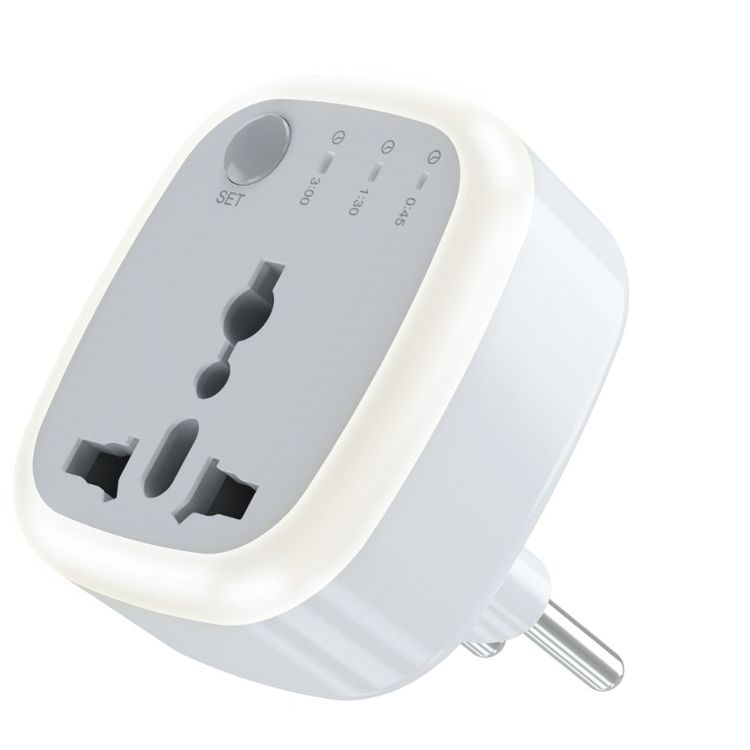 Green Lion Universal Conversion Plug with Timer Function, LED Light, Polycarbonate Material, EU Power Plug, 3-Mode Timer, Overheat Protection, Short Circuit Protection - White