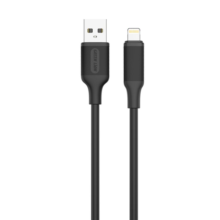 Green Lion USB-A to Lightning PVC Cable, 480 Mbps Transfer Speed, 2.4 A Current, 10000 Bends Life Span, Secure & Safe, 1 m Cable Length - Black