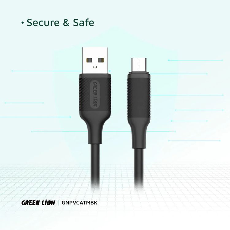 Green Lion USB-A to Micro PVC Cable, 480 Mbps Transfer Speed, 10000 Bends Life Span, Secure & Safe, 1 m Cable Length - Black