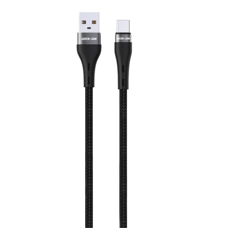 Green Lion USB-A to USB-C Braided Cable, 15W, Secure & Safe, Charge & Sync, Wide Compatibility, 1m Cable Length, 10000 Bends Life Span - Black