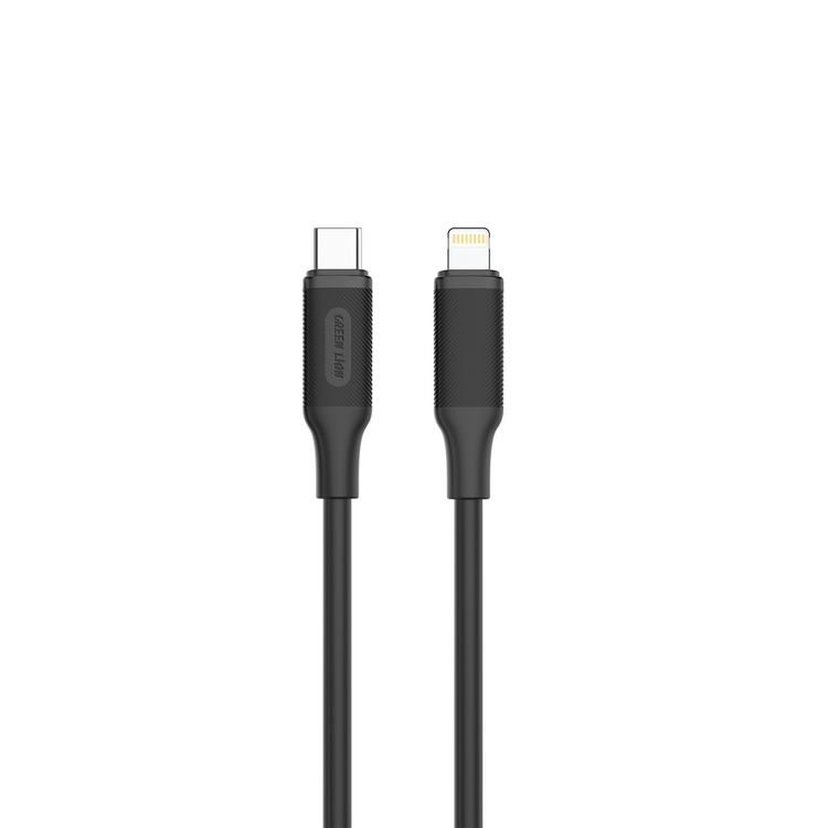 Green Lion USB-C to Lightning PVC Cable, 10000 Bends Life Span, Wide Compatibility, Fast Charge, Secure & Safe, 2m Cable Length - Black