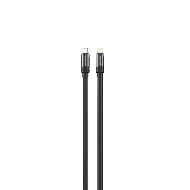 Green Lion Silicone USB-C to Lightning Cable with 1m Length, Fast Charge & Data Sync, Tangle-Free Design, 480Mbps Transfer Speed, 27W Power Delivery, Wide Compatibility, Secure & Safe - Black
