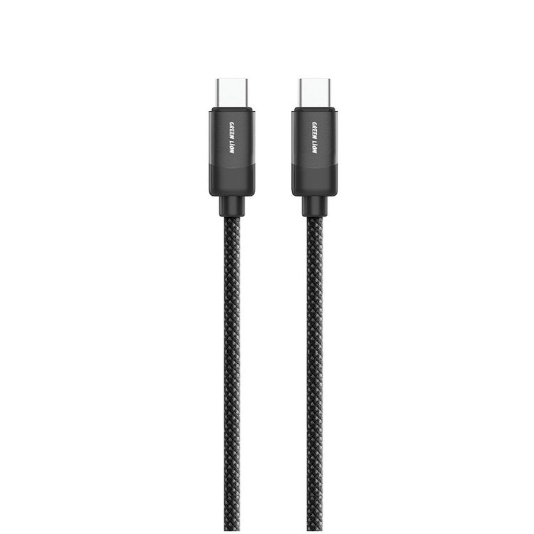 Green Lion USB-C to USB-C Braided Cable with 10000 Bends Lifespan, 1m Length, 60W Current Power, Secure & Safe, Charge & Sync, Wide Compatibility, 480Mbps Transfer Speed - Black