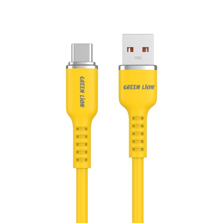 Green Lion USB-A to USB-C Silicone Cable 1m, 480Mbps Transfer Speed, 15W, Fast Charging & Sync, More than 10,000 Bends Life Span, Safe & Secure - Yellow