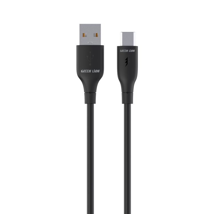 Green Lion USB-A to USB-C PVC Cable 30cm, 480Mbps Transfer Speed, 15W, Fast Charging & Sync, More than 10,000 Bends Life Span, Safe & Secure - Black
