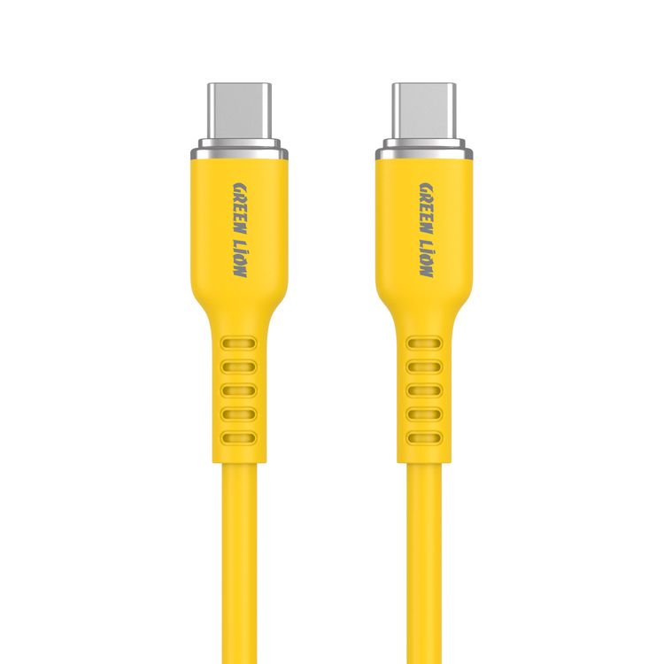 Green Lion USB-C to USB-C Silicone Cable 1m, 480Mbps Transfer Speed, 60W, Fast Charging & Sync, More than 10,000 Bends Life Span, Safe & Secure - Yellow