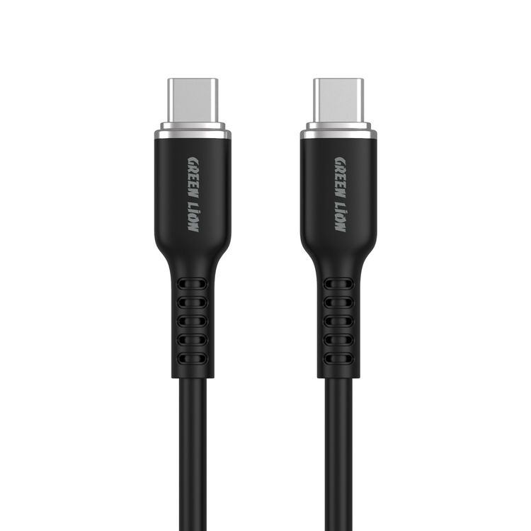 Green Lion USB-C to USB-C Silicone Cable 1m, 480Mbps Transfer Speed, 60W, Fast Charging & Sync, More than 10,000 Bends Life Span, Safe & Secure - Black