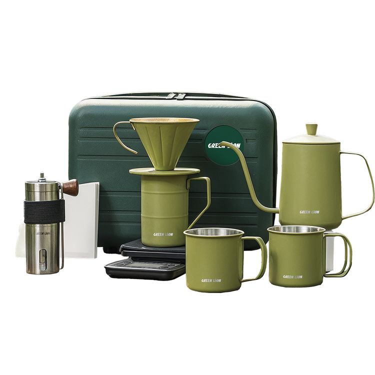Green Lion V-60 Pro Coffee Maker Set with Gooseneck Kettle, 100 Paper Filters, Precision Scale, Pour-Over Dripper, Adjustable Grinder, 2 Stainless Steel Cups, Travel Case Included - Green