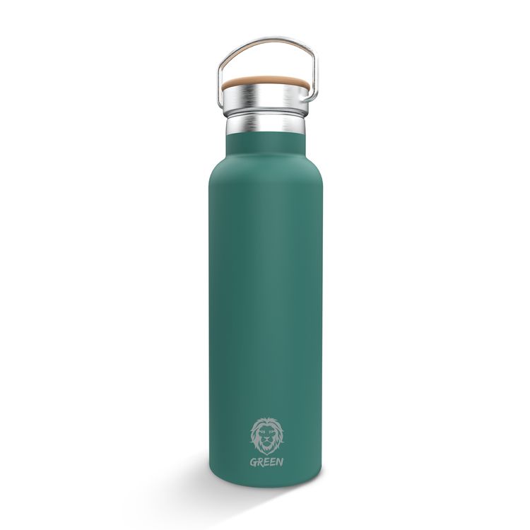 Green Lion Vacuum Flask Stainless Steel Water Bottle 600ml / 21oz with Handle, Aqua Max Double Vacuum Wall, Insulated Water Bottle, Scratch Defense & Condensation Proof - Green