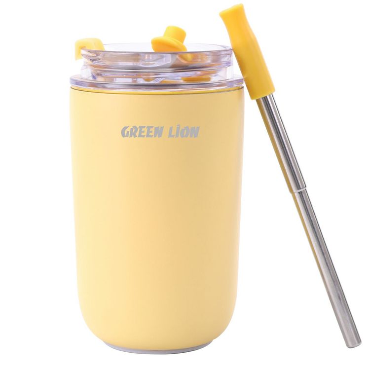 Green Lion Vacuum Travel Mug Lite, 280 mL Capacity, Keeping Hot for 6 Hours and Cold for 12 Hours, Food Grade Silicone Straw, Food Grade Stainless Steel Cup - Cream