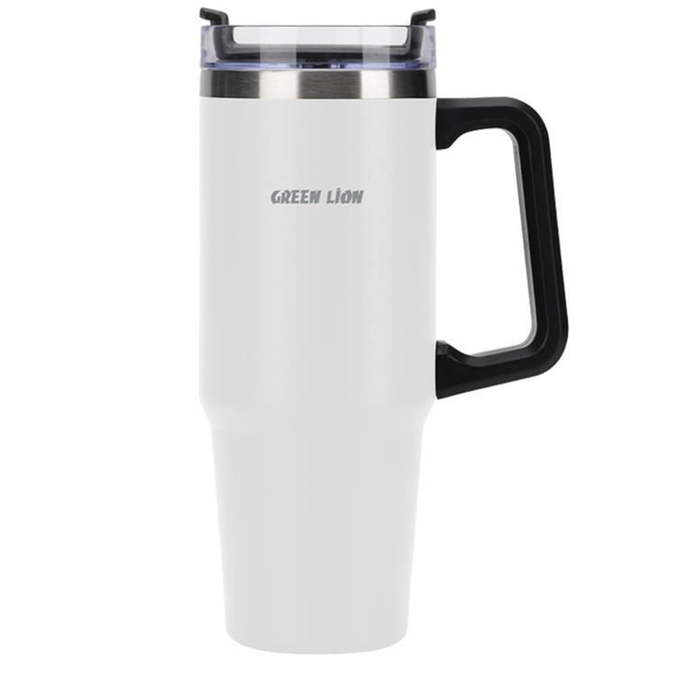 Green Lion Vacuum Travel Mug, 16 Hours Hot Retention & 24 Hours Cold Retention, Stainless Steel Material, Comfy & Portable Handle, Extra Wide Opening, Cup Holder Friendly - White
